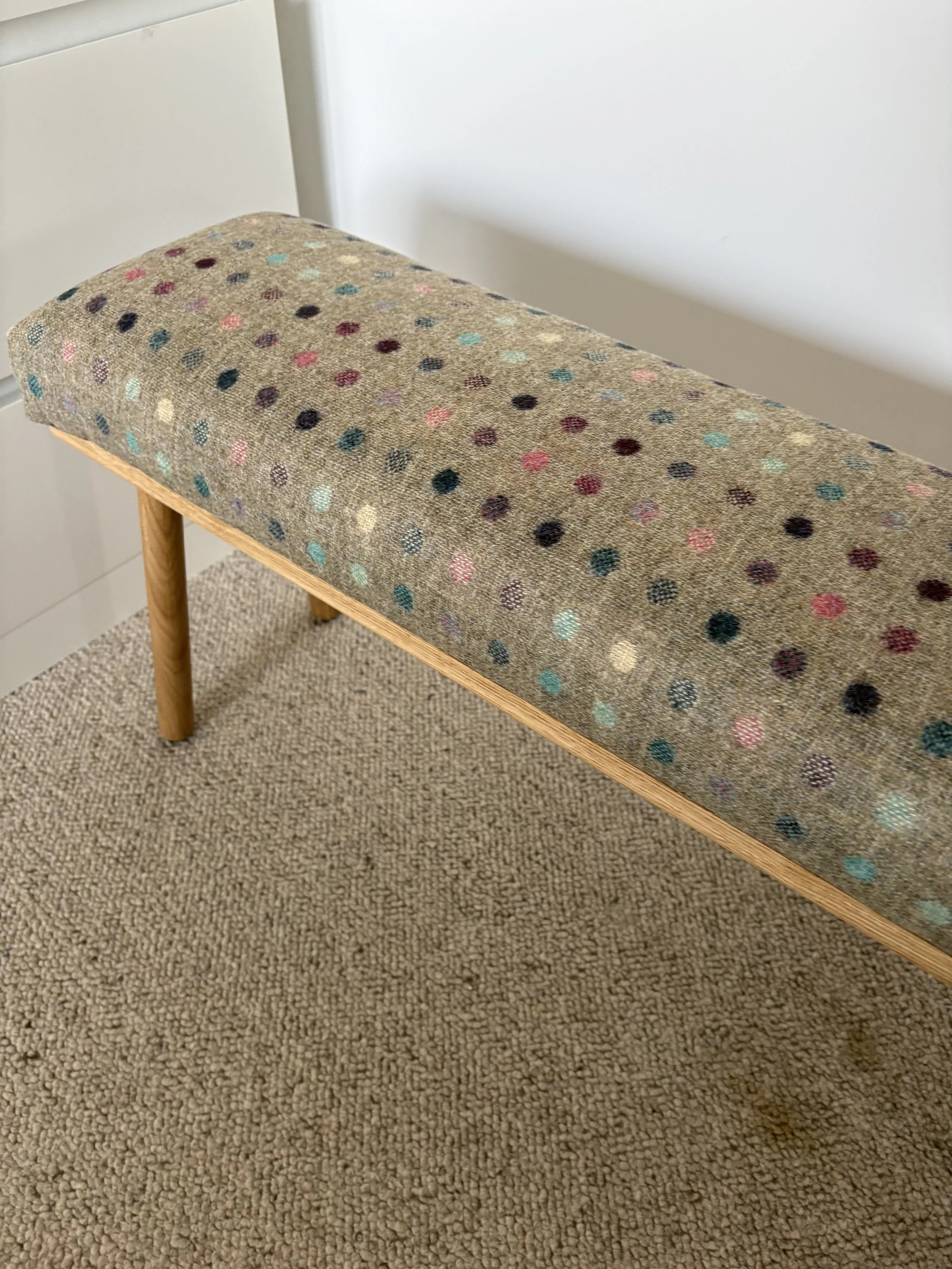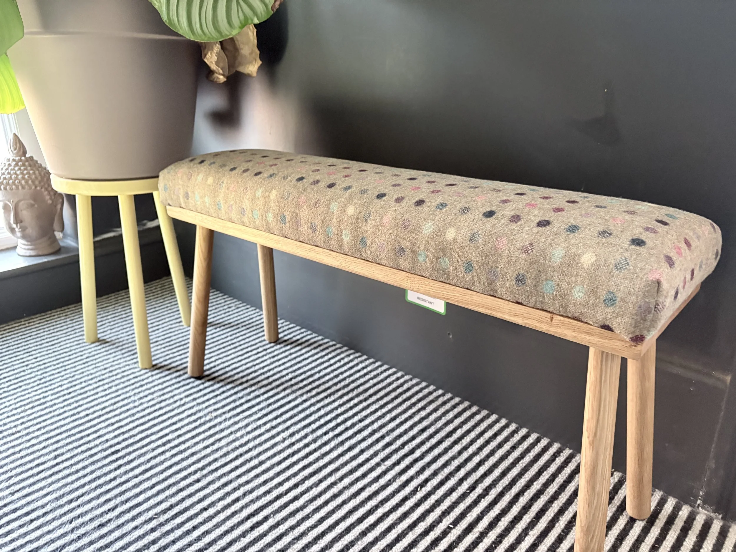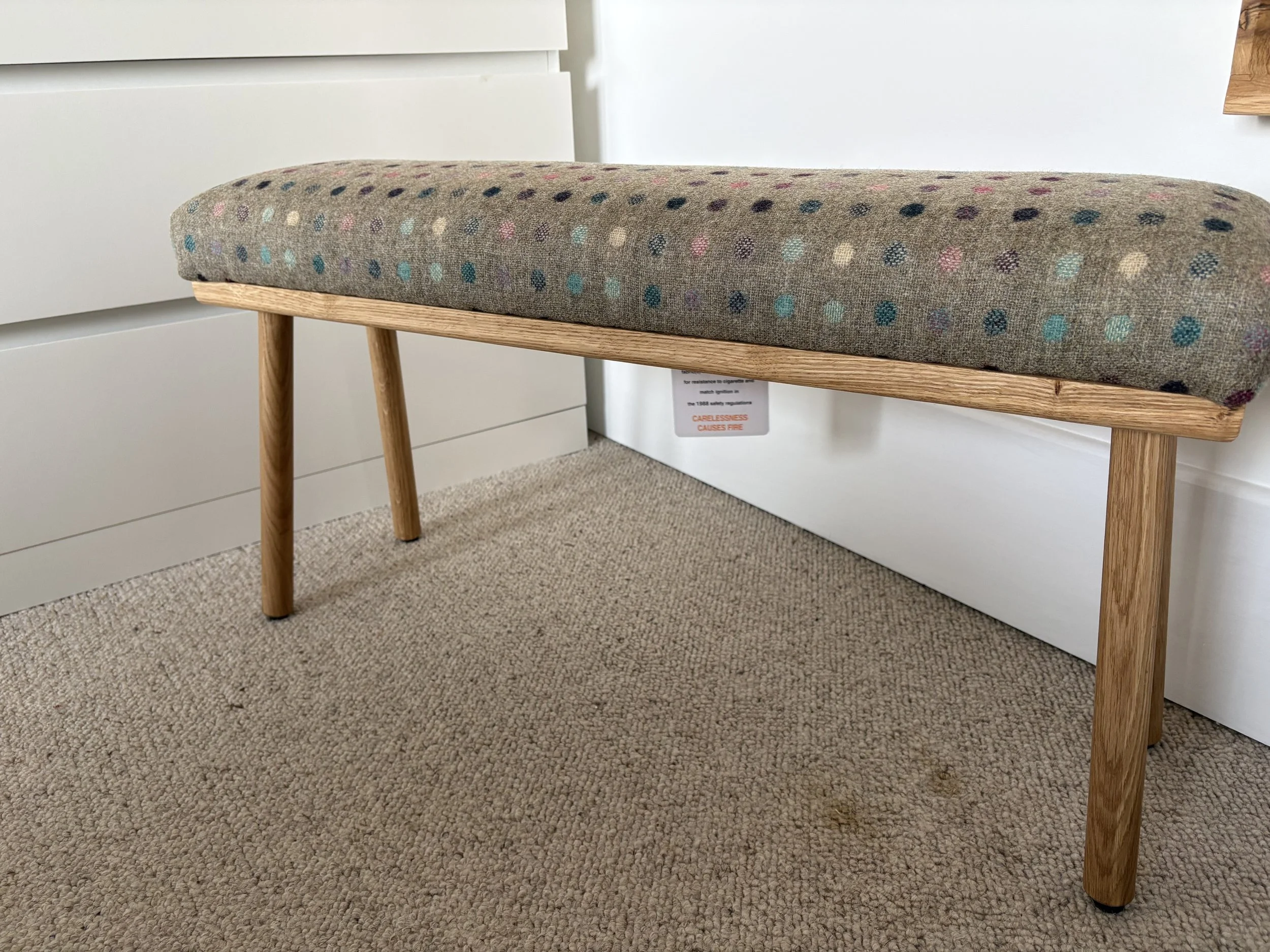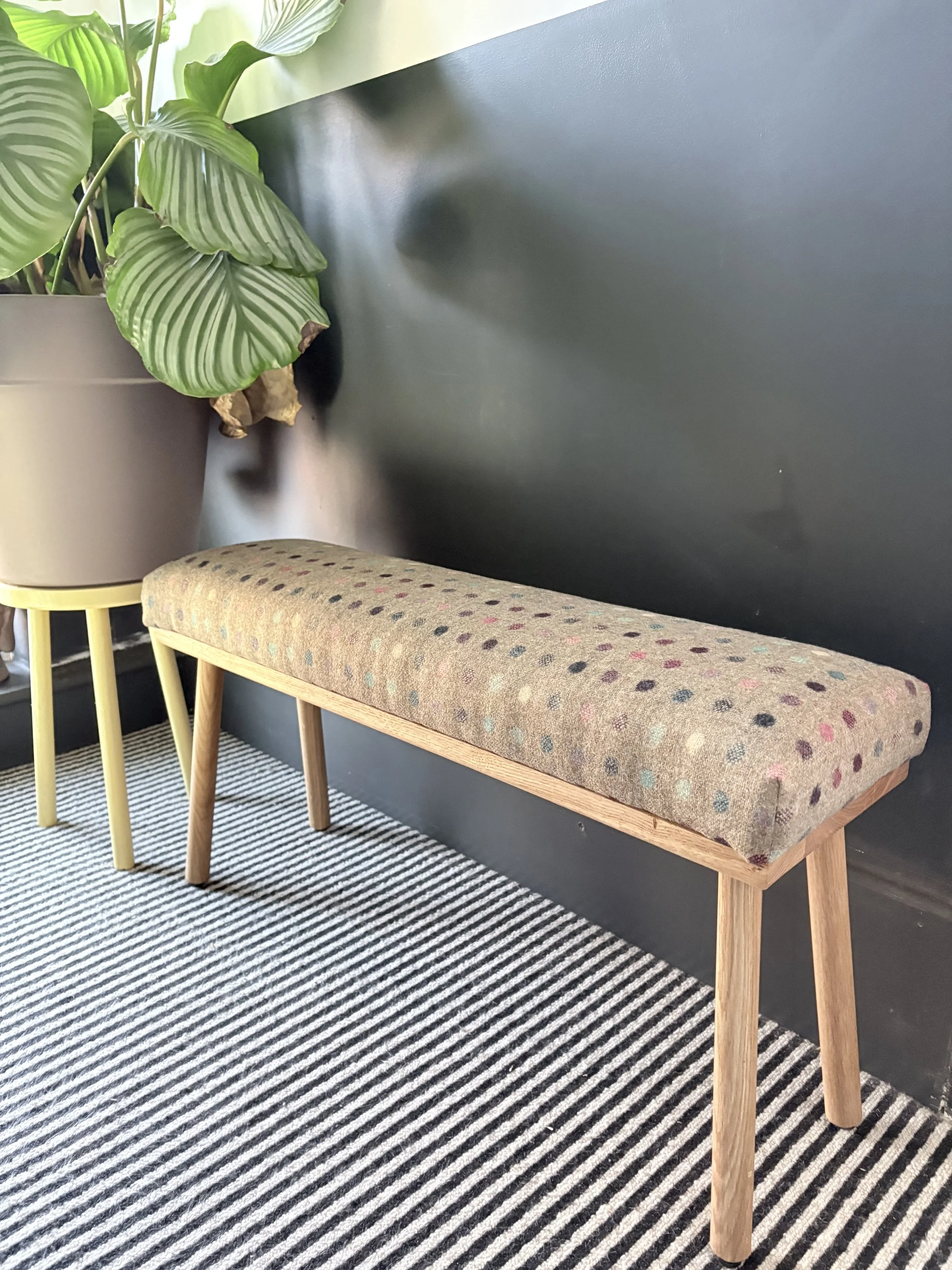 The benches are 34cm wide as standard but can be narrower wider on request, the top is made from 25mm thick Oak and 32mm Oak legs which make it an extremely strong and durable piece of furniture. (Bench over 150cm are made with 32mm thick top and 35mm legs) . Each piece is finished in beewax but can also left raw, finished in varnish or something else on request.